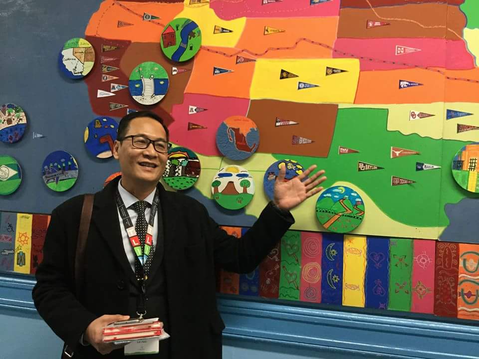 Thầy Đặng Lê Anh - Phó Viện Trưởng Viện IVS và Đại diện Tập Đoàn Frankly - Covey của Canada trong một trường công của Mỹ.